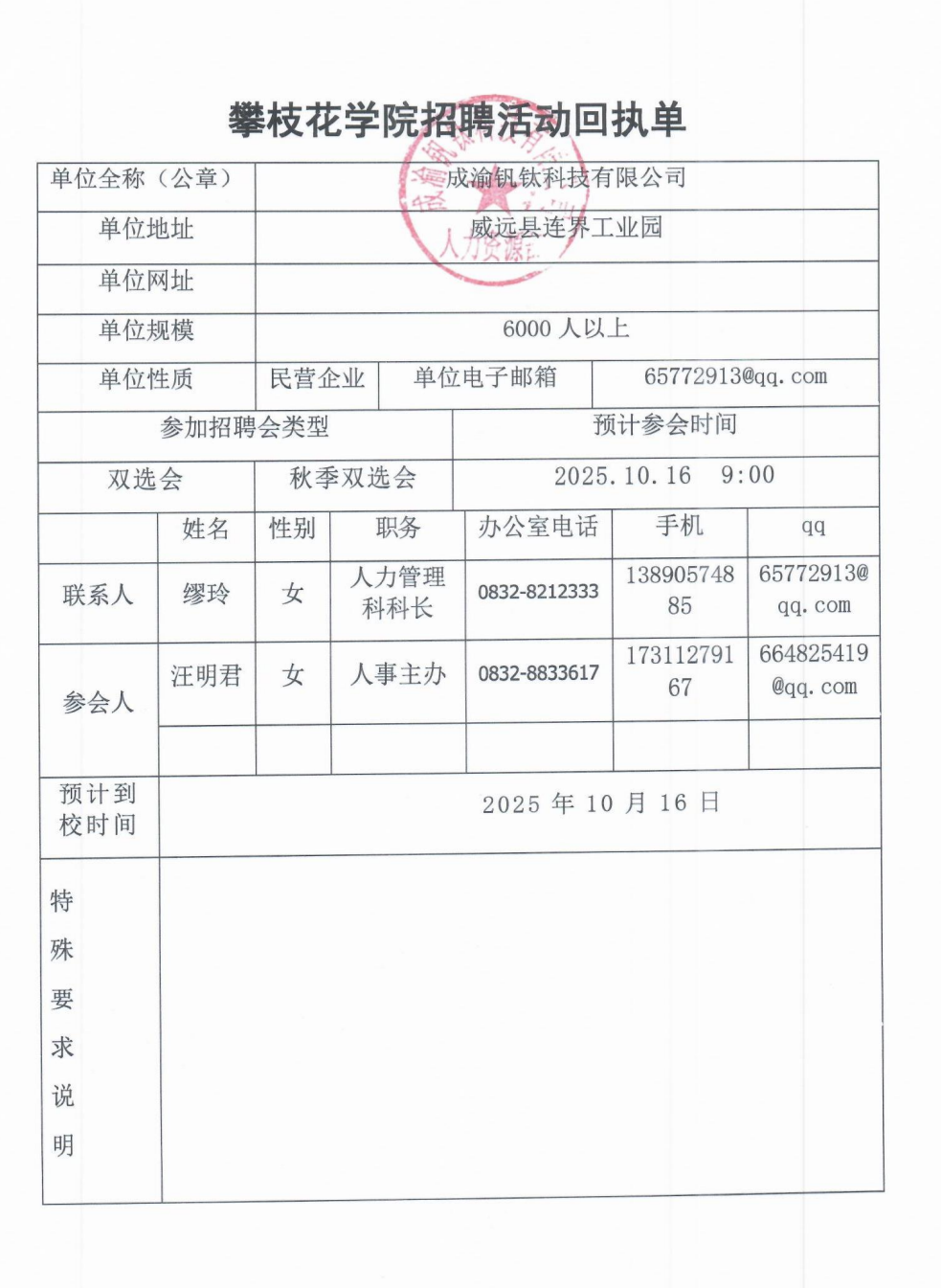 成渝钒钛科技有限公司招聘简章