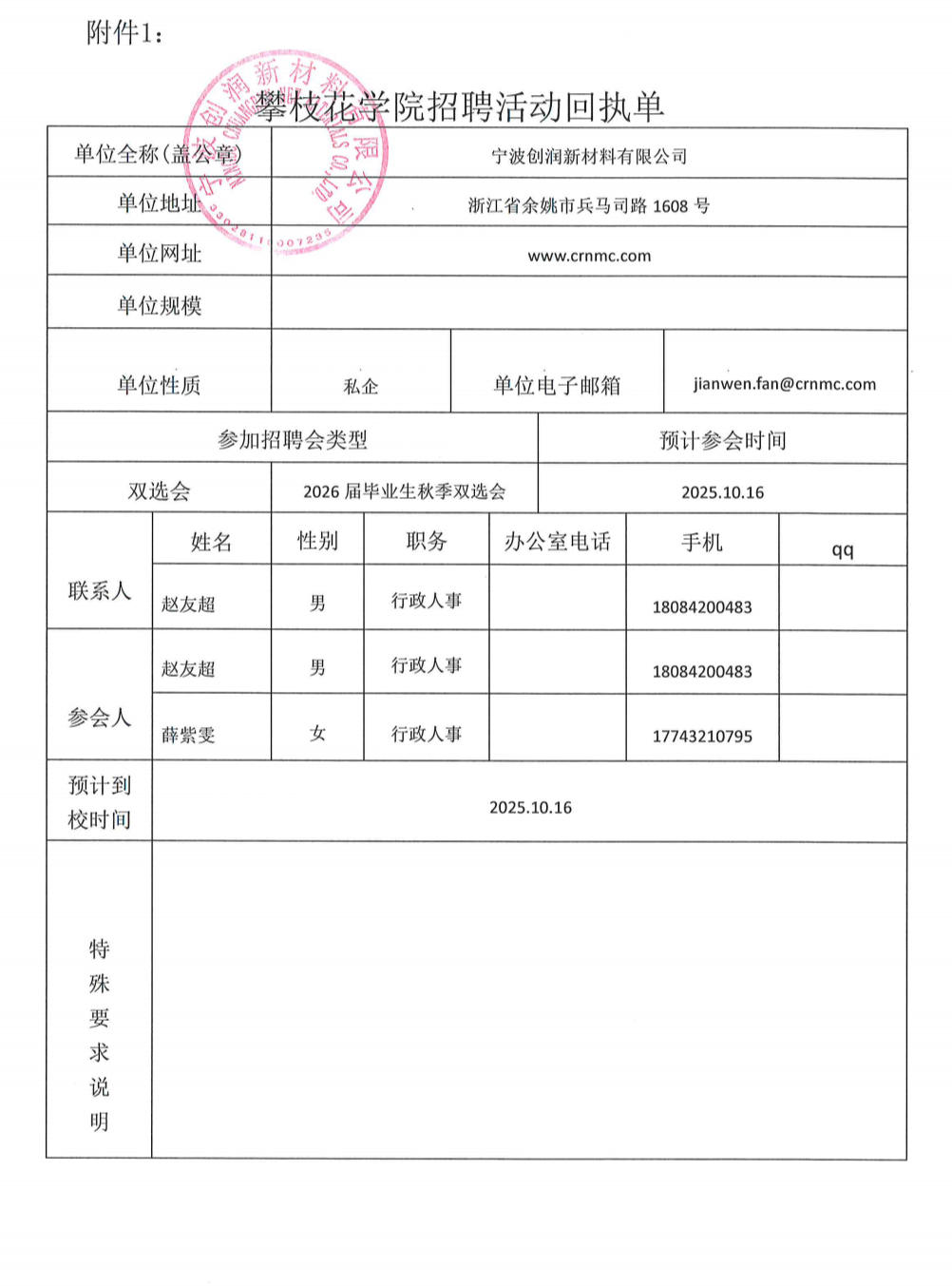宁波创润新材料有限公司招聘简章