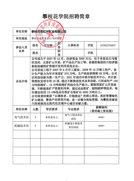 攀枝花青杠坪矿业有限公司招聘简章