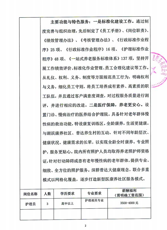 攀枝花普达康和敏盛养老服务有限公司招聘简章