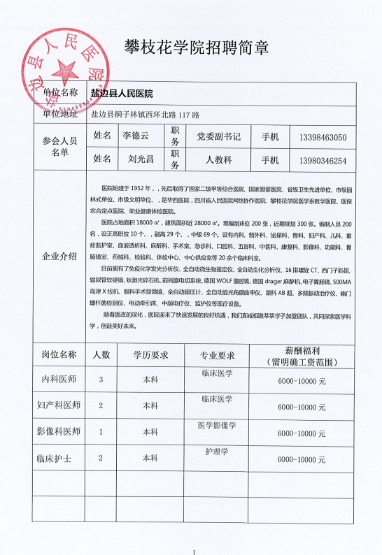 盐边县人民医院招聘简章