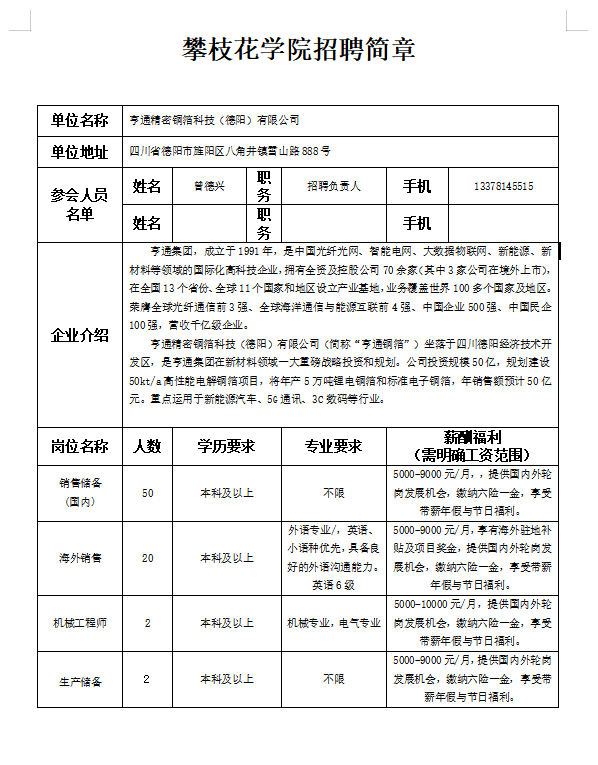 亨通精密铜箔科技(德阳)有限公司招聘简章