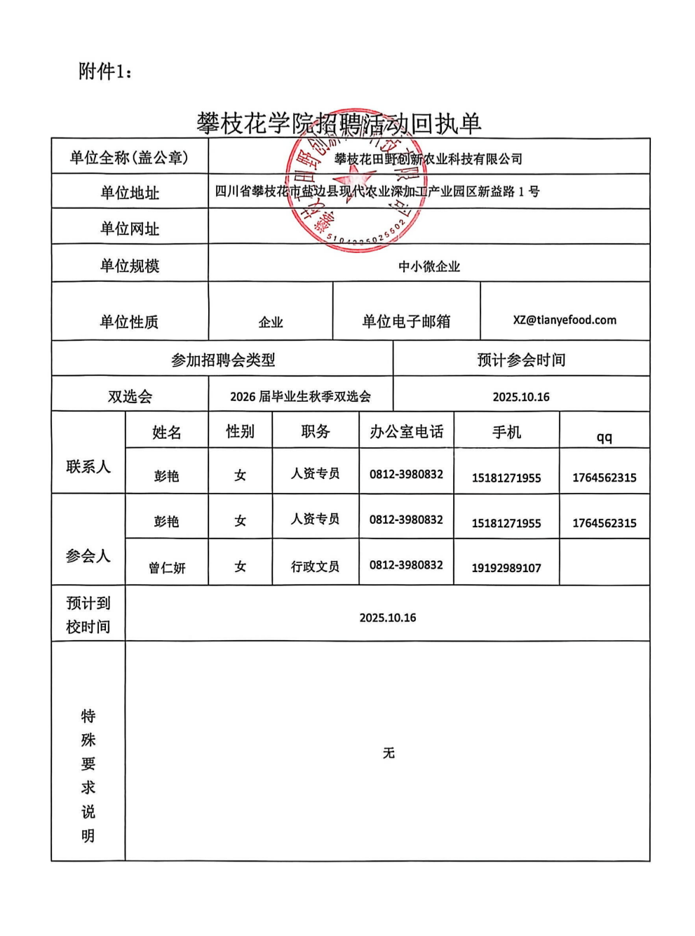 攀枝花田野创新农业科技有限公司招聘简章