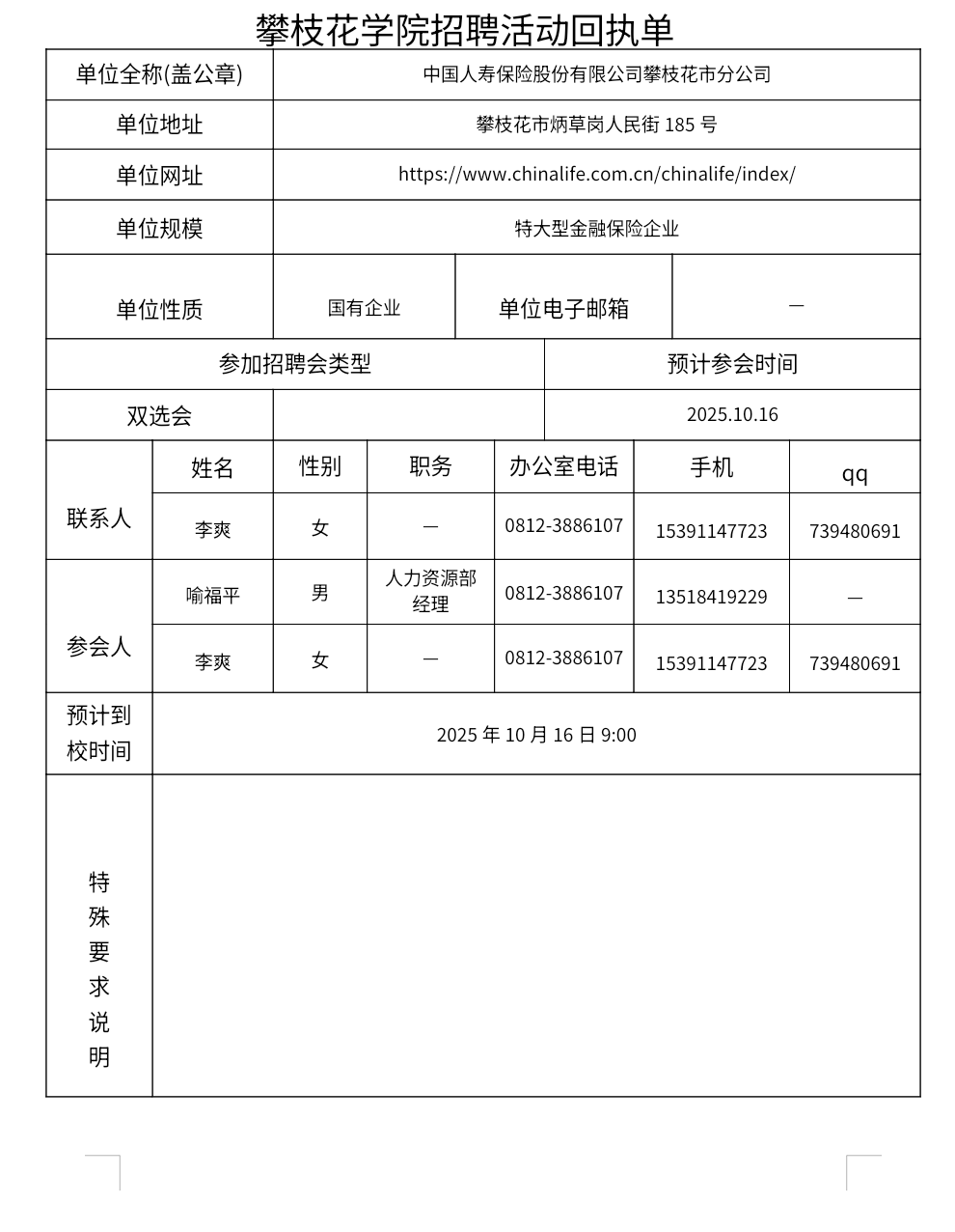 中国人寿保险股份有限公司攀枝花市分公司